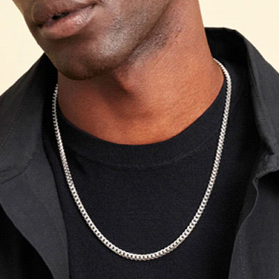 The Silver 5mm Cuban Link Chain from JAXXON can effortlessly elevate your look. With its classic design and ideal balance of heft and luster, this men’s necklace is a must-have accessory for everyday wear. Known for being JAXXON’s best-selling chain, its subtle yet striking design guarantees that it goes well with both informal and formal settings. Exquisitely crafted, this chain is more than just a piece of jewelry—it’s a representation of timeless elegance and sophistication. Establish the Silver 5mm Cuban Link Chain as the focal point of your assortment, embodying classic style with each wear.