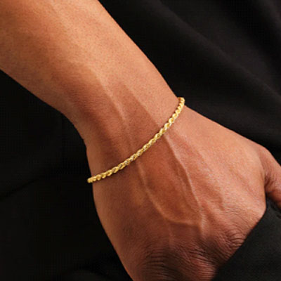 Introducing the ideal match for our top-selling Rope Chain: the 2.5mm Gold Rope Bracelet. This bracelet is made with great care and has been diamond-cut for optimum brilliance. It is intended to capture and reflect light from all directions. Because of its superb craftsmanship, you can wear it from your most formal occasion to your morning gym with ease. With a subtle yet striking sheen, the 2.5mm Gold Rope Bracelet exudes classic elegance and makes a statement. Wear this stunning piece on your wrist to elevate your everyday look and guarantee that brightness never fades—it goes well with every outfit.