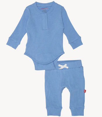 Blue skies ribbed cotton magnetic long sleeve bodysuit + pant set: