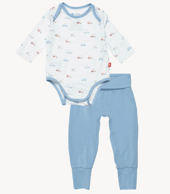The Blue Skies Ribbed Cotton Magnetic Long Sleeve Bodysuit + Pant Set from Magnetic Me is the ultimate combination of comfort, style, and practicality for your baby’s wardrobe. Crafted from ultra-soft ribbed cotton, this set offers the perfect cozy fit for babies, while the brand’s innovative magnetic closures make dressing and diaper changes effortless for parents.